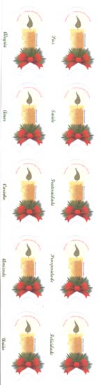 Devido à disposição dos 35 selos de Bolas de Natal na folha, existem 17 quadras diferentes e 7 sextilhas, pelo menos na minha conta. Verifiquei, também, que alguns colecionadores estão montando uma tira horizontal contendo 12 palavras, sendo duas repetidas, com a folha das Bolas de Natal. E com a folha da Vela de Natal, uma tira vertical, com as dez palavras existentes; Abaixo, montagens que preparei para demonstrar essas possibilidades.