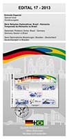 Edital nº 17 Arte: Juliana Souza Processo de Impressão: ofsete + verniz UV Minifolha com 5 selos Papel: cuchê gomado Valor facial: R$2,75 cada selo Tiragem: 150.000 minifolhas Área de desenho: 59mm x 25mm Dimensão do selo: 59mm x 25mm Dimensão da minifolha: 148,5mm x 210mm Picotagem: 11,5 x 12 Data de emissão: 3/10/2013 Locais de lançamento: São Paulo/SP, Canela/RS, Blumenau/SC, Curitiba/PR, Brasília/DF, Rio de Janeiro/RJ, Recife/PE e Porto Alegre/RS Peça filatélica: Envelope de 1º Dia de Circulação Tiragem: 10.000 Impressão: Casa da Moeda do Brasil Prazo de comercialização pela ECT: até 31 de dezembro de 2016 (este prazo não será considerado quando o selo/bloco for comercializado como parte integrante das coleções anuais, cartelas temáticas ou quando destinado para fins de elaboração de material promocional).