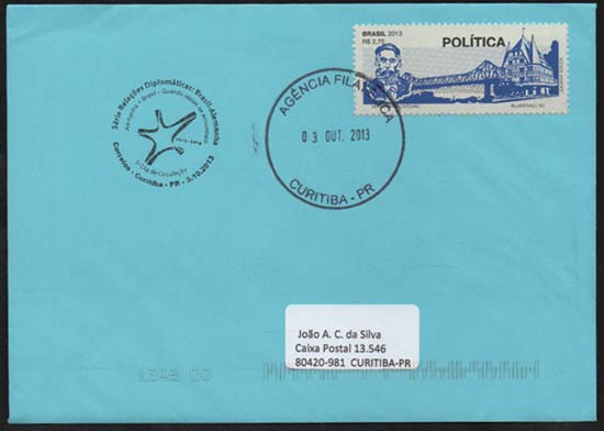 Envelope circulado com carimbo comemorativo de 1º dia de circulação