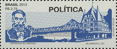 É exatamente isso que se pretende expressar com a edição especial da presente série de selos. Pelo portrait de Hermann Blumenau, fundador da cidade brasileira de Blumenau, por exemplo, foi honrada a história comum. Outros motivos destacam a participação da Alemanha em projetos de desenvolvimento sustentável e preservação dos recursos naturais. Com isso, miramos a atual cooperação exitosa e o futuro das relações bilaterais.