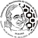 Por meio dessa emissão, os Correios homenageiam o Centenário do Nascimento de Vinicius de Moraes, poeta lírico e apaixonado, artista de grande acervo, notabilizado por seus sonetos e referencial da música popular brasileira.
