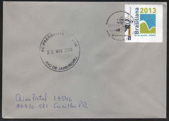 Com esta emissão os Correios do Brasil lançam novo tipo de Selo Personalizado Brasiliana 2013 que, a exemplo de outros países, não possui vinheta. A imagem personalizada é impressa no corpo do selo, ficando constantes os dados básicos, o logo dos correios, a palavra Brasil e a indicação do valor da tarifa postal. (Redação própria, ainda não recebi as informações oficiais)