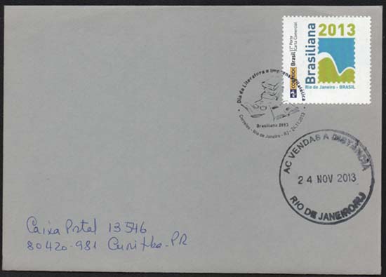 Envelope circulado com Carimbo comemorativo ao Dia da Literatura