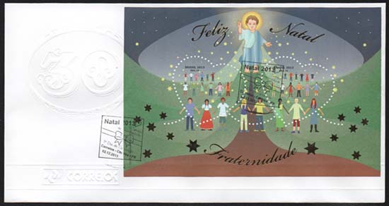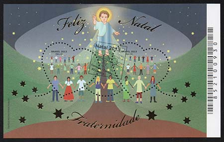 A imagem do bloco traz uma abóbada celeste iluminada pela presença do Menino Jesus, que irradia estrelas que caem sobre a Terra, representada pelo desenho, na cor verde, que faz alusão a uma árvore de Natal e por pessoas, de mãos dadas, de diversas nacionalidades e culturas, em união fraternal. A técnica utilizada foi ilustração vetorial.