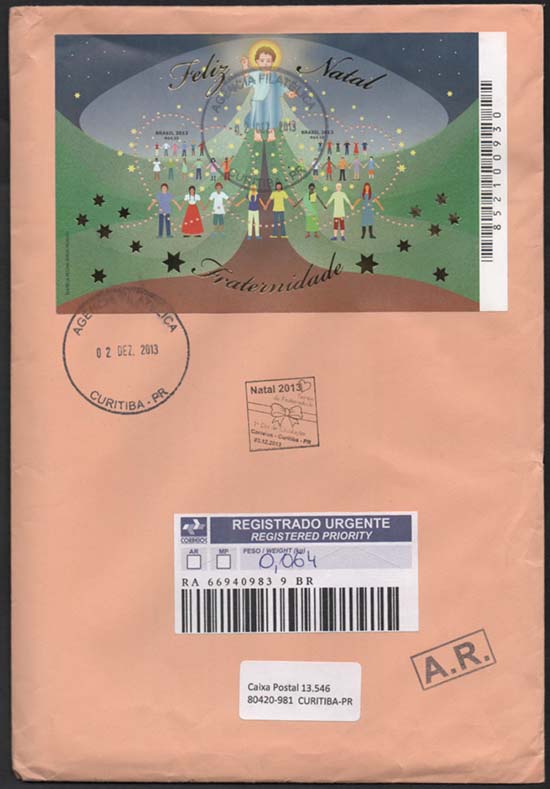 Edital nº 20 Arte: Thereza Regina Barja Fidalgo Processo de Impressão: Ofsete + Hot Stamping Bloco com 2 selos Papel: Cuchê gomado Valor facial: R$ 4,15 cada selo Tiragem: 150.000 blocos Área de desenho: 44mm x 44mm (formato de coração) Dimensões do selo: 44mm x 44mm (formato de coração) Dimensão do bloco: 137mm x 85mm Picotagem: 11 x 11 Data de emissão: 2/12/2013 Locais de lançamento: em todas as DR's Impressão: Casa da Moeda do Brasil Prazo de comercialização pela ECT: até 31 de dezembro de 2016 (este prazo não será considerado quando o selo/bloco for comercializado como parte integrante das coleções anuais, cartelas temáticas ou quando destinado para fins de elaboração de material promocional).