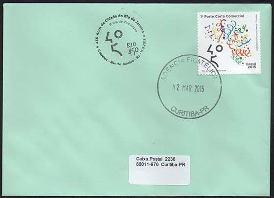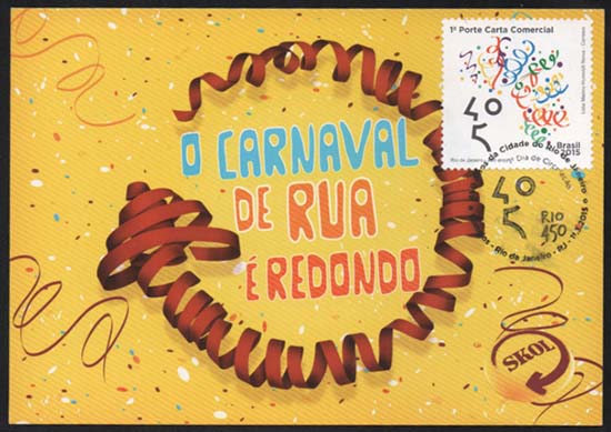 Com os selos comemorativos inspirados na marca Rio450, os Correios prestam uma expressiva homenagem ao povo carioca e à Cidade Maravilhosa. A comemoração dos 450 anos acontece em meio a uma revolução digital, em que, contudo, as correspondências e os selos reafirmam seu secular poder de comunicar e transmitir informações. Parabéns ao Rio!