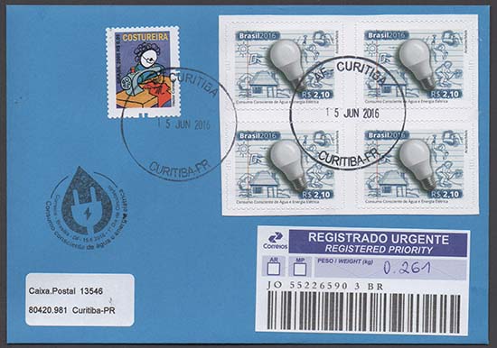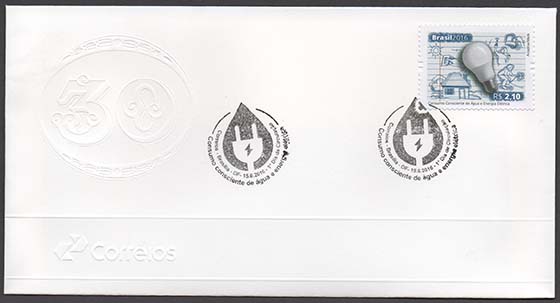 Nesta emissão, os Correios abordam a importância do consumo consciente de água e energia elétrica, estimulando as práticas sustentáveis nas atitudes diárias.