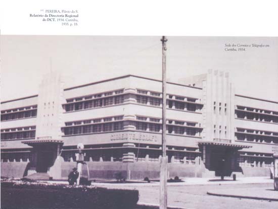 Como já tive oportunidade de dizer na reportagem sobre a primeira reunião filatélica de 2012, o que nós consideramos como correio antigo, isto é, a sede da regional anterior à atual, está em reformas e servirá, entre outras coisas, para sediar a Agência Filatélica de Curitba, e terá um grande espaço destinado a mostras, exposições, e outras atividades afins à filatelia. Neste livro encontrei diversas imagens não só dessa sede, como da primeira, inclusive uma da fachada do prédio que sedia atualmente a Agência Filatélica.