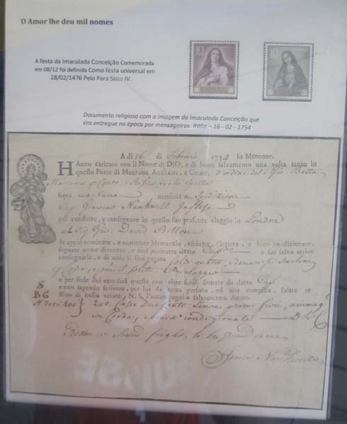 Documento religioso com a imagem de Na. Sra. da Conceição