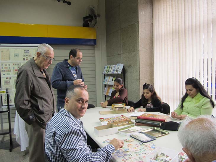 Outro ângulo, mostrando mais alguns dos filatelistas presentes