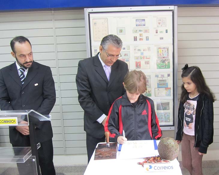 Eduardo Trapp, jovem filatelista realiza a 2ª obliteração...