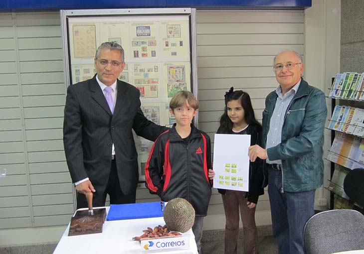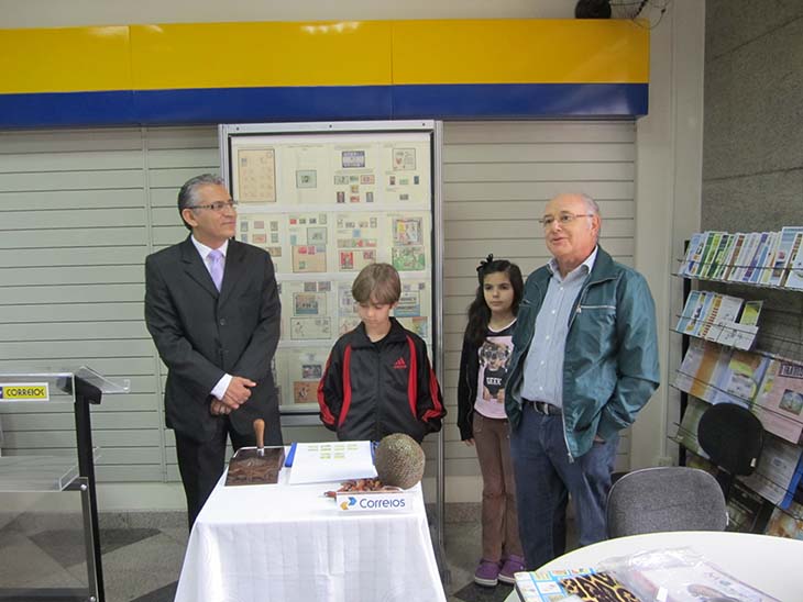 Lucirene Ribas, Gerente da AF, Eduardo Trapp, filatelista mirim, Marlon Alexandre Zacarias, Mestre de Cerimônias, Manuela Funes, filatelista mirim.
